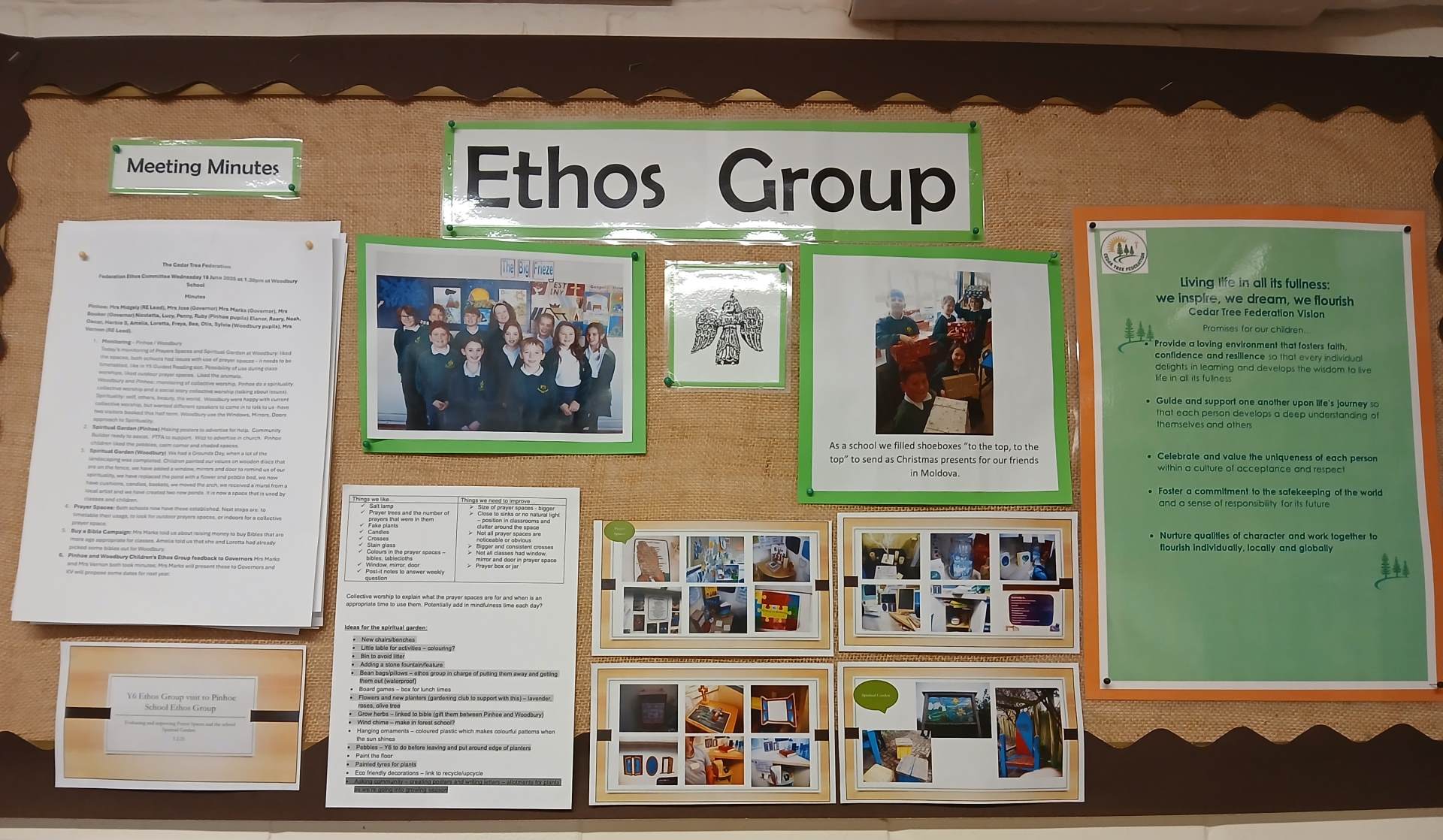 Every year, children in Year 6 nominate themselves to be Ethos Group Leaders. They, with the support of the RE and SIAMS Lead, decide upon a focus for the year which would further develop the school's Christian Distinctiveness. Once this is decided, they invite other members of KS2 to join them as representatives from each year group and they then have to complete an application letter. These letters are considered by the Y6 Ethos Group Leaders and they decide upon their team.