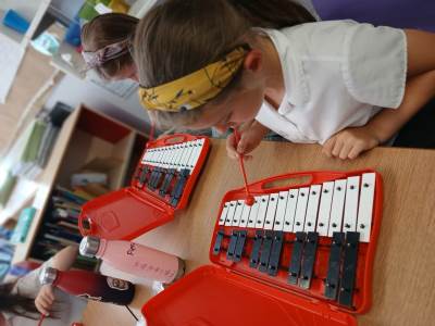 Children have the opportunity to learn musical instruments during their time at Woodbury. They learn to play a range of percussion and tuned instruments including ukuleles, ocarinas and steel pan drums.